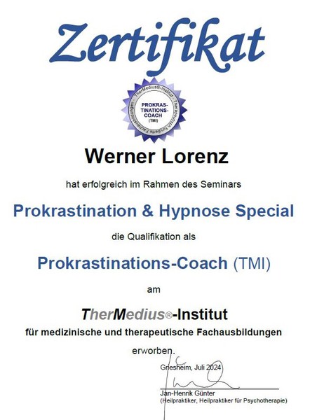 "ausgebildeter Prokrastinations- Coach"