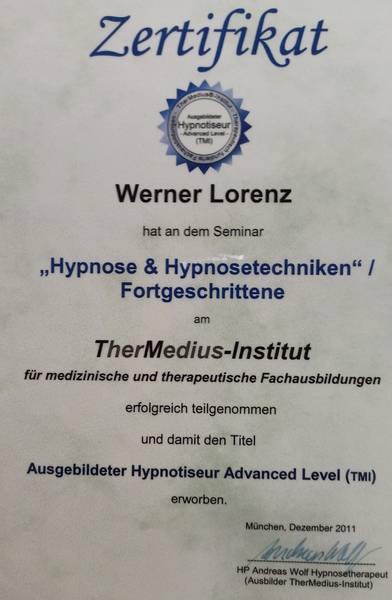 "zertifizierter Hypnotiseur - Advanced Level"